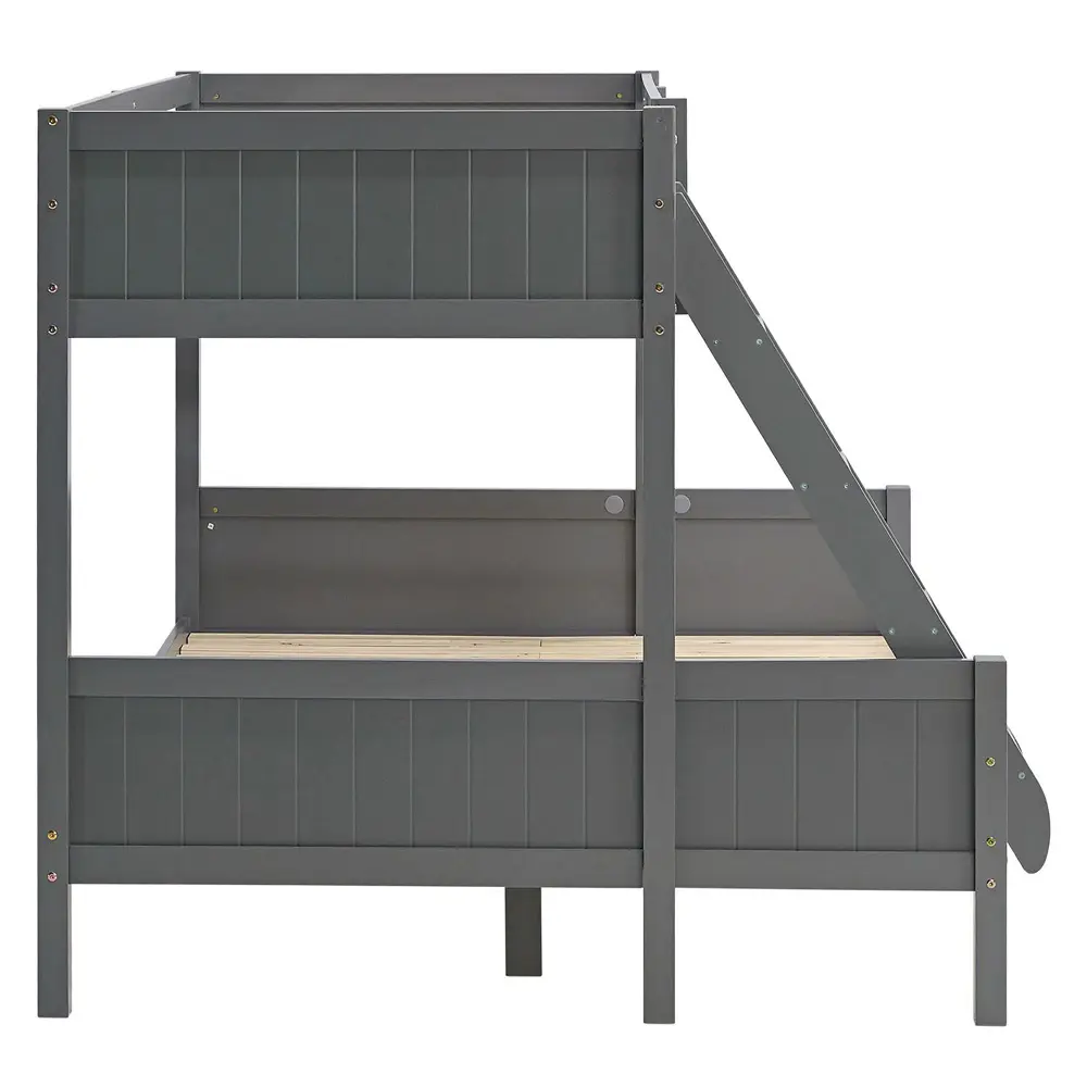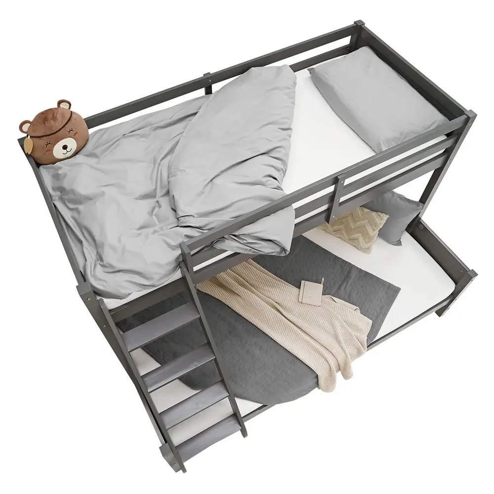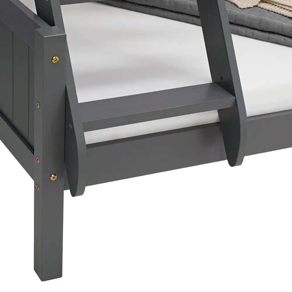 Unser Etagenbett mit zwei Liegeflächen ist in modischem Grau lackiert, was eine ästhetische und stilvolle Atmosphäre im Kinderzimmer schafft. Diese Farbe harmoniert klasse mit verschiedenen Einrichtungsstilen und lässt sich leicht mit anderen Dekorationen kombinieren.