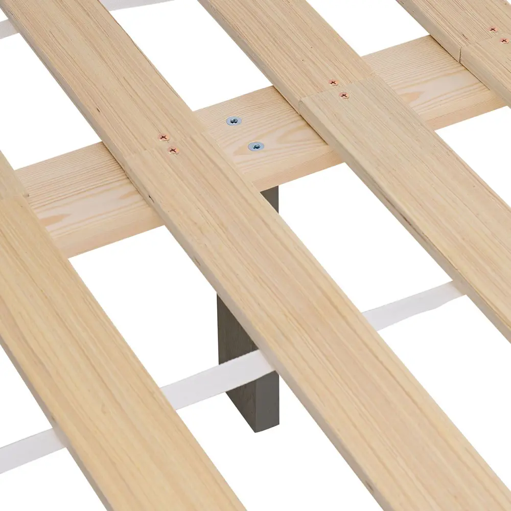 Bauen Sie das Bett mithilfe der beiliegenden Schritt-für-Schritt-Anleitung auf und verwenden Sie das mitgelieferte Befestigungsmaterial, um eine robuste und sichere Konstruktion zu gewährleisten.