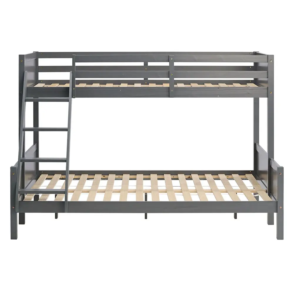 Etagenbett mit zwei Liegeflächen – 90×200 und 140×200 – Doppelstockbett aus Vollholz – Farbe: Grau
