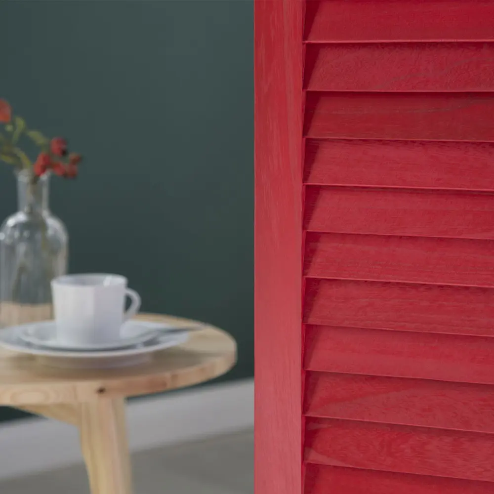 Mehrfarbiger Raumteiler mit Motiven 105×130 cm – Paravent 3 teilig aus Holz mit Holzlamellen – Farbe: Rot Weiß Blau