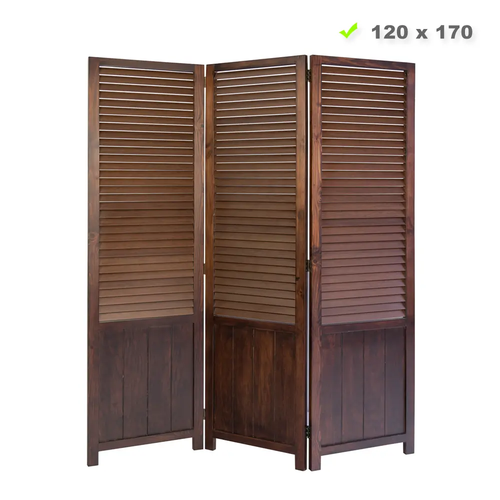 Raumteiler aus Holz im used Stil 120×170 cm – Paravent 3 teilig mit mehrzeiligen Holzlamellen – Farbe: Braun