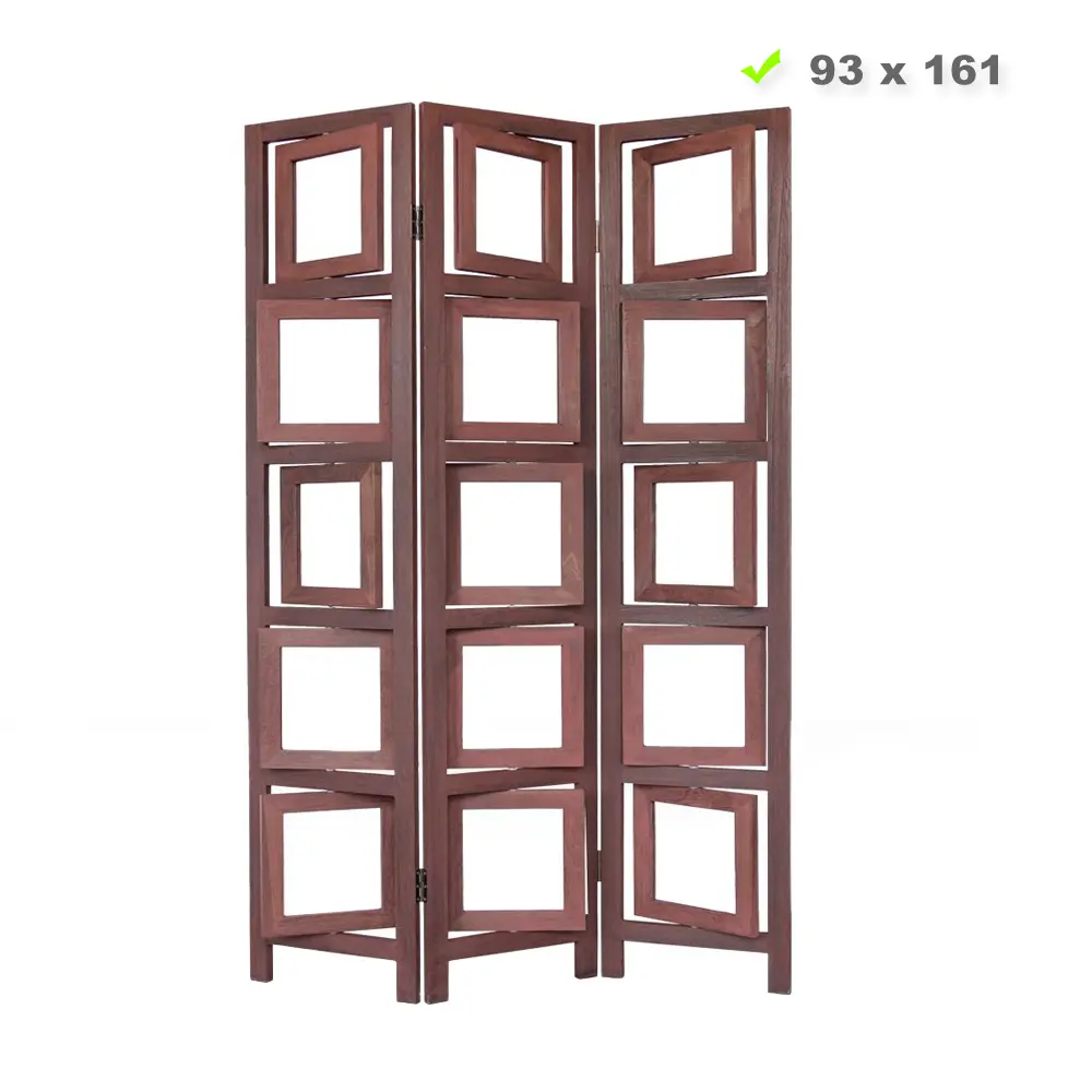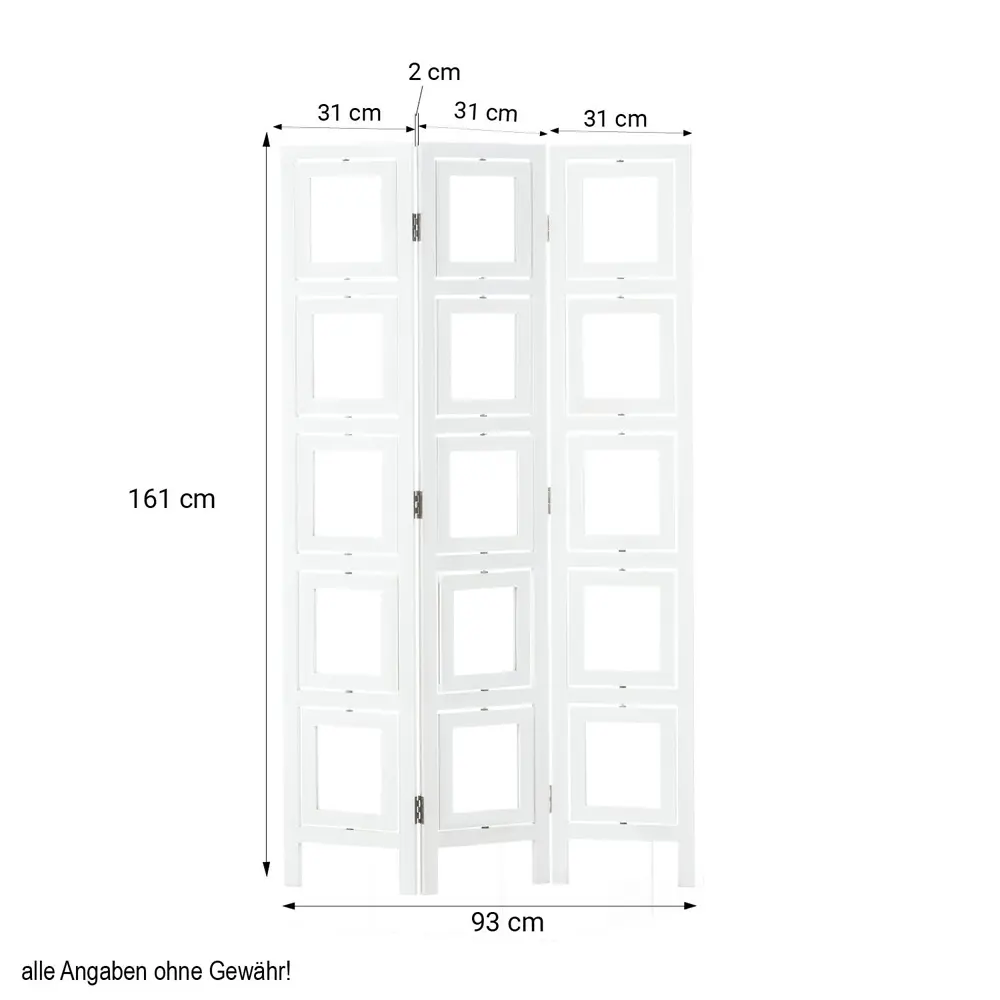 Raumteiler mit Einschubfächern 93×161 cm – Paravent 3 teilig aus Holz mit 15 Fotohaltern – Farbe: Braun
