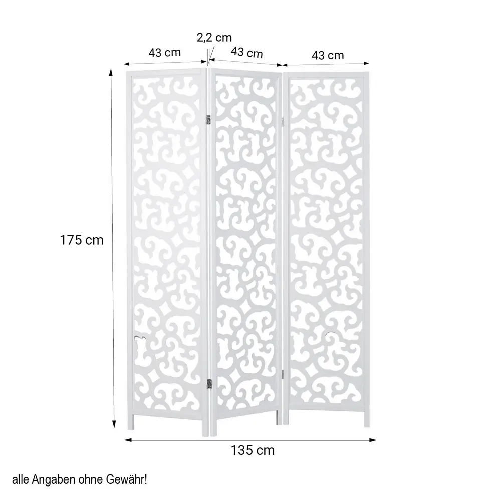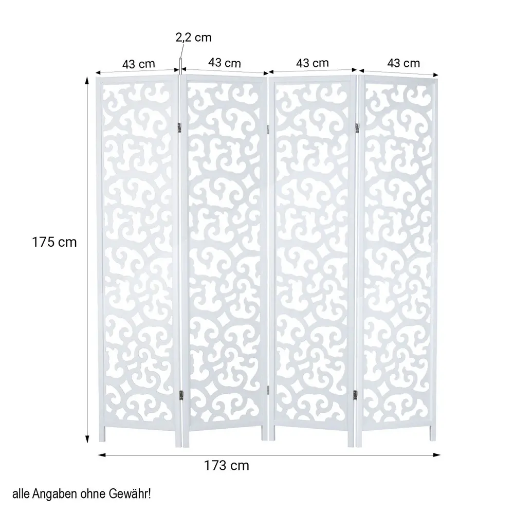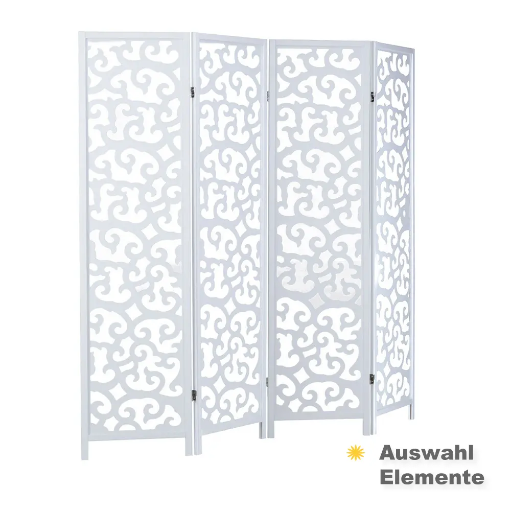Raumteiler mit Verzierungen – Paravent 3-4 teilig aus Holz in filigraner Art – Farbe: Weiß