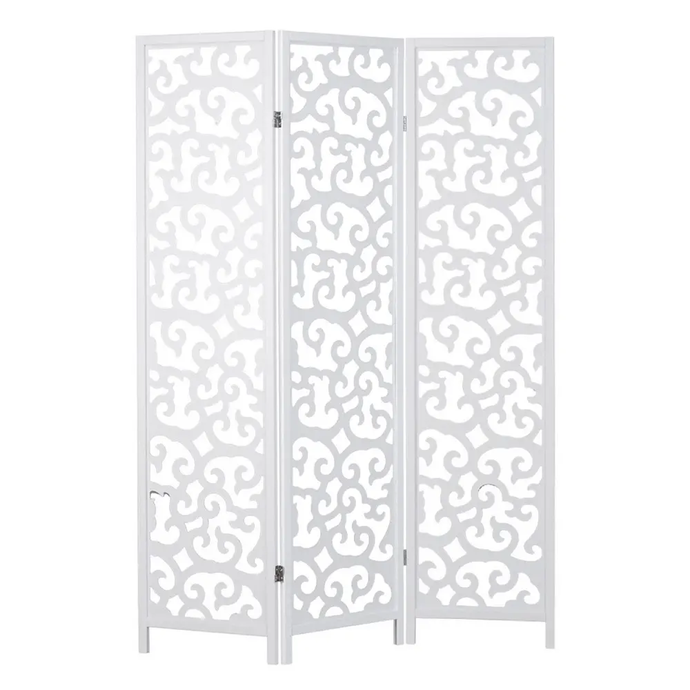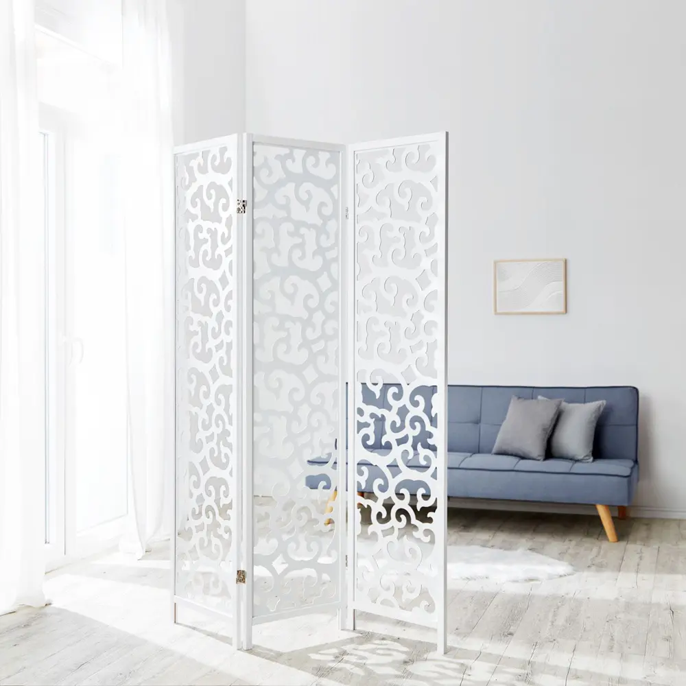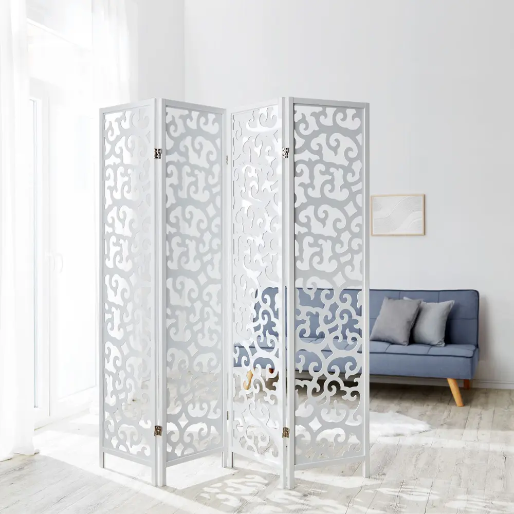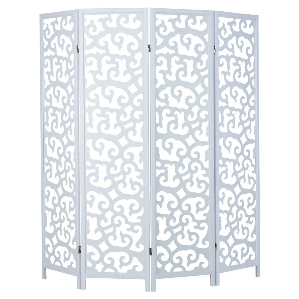 Raumteiler mit Verzierungen – Paravent 3-4 teilig aus Holz in filigraner Art – Farbe: Weiß
