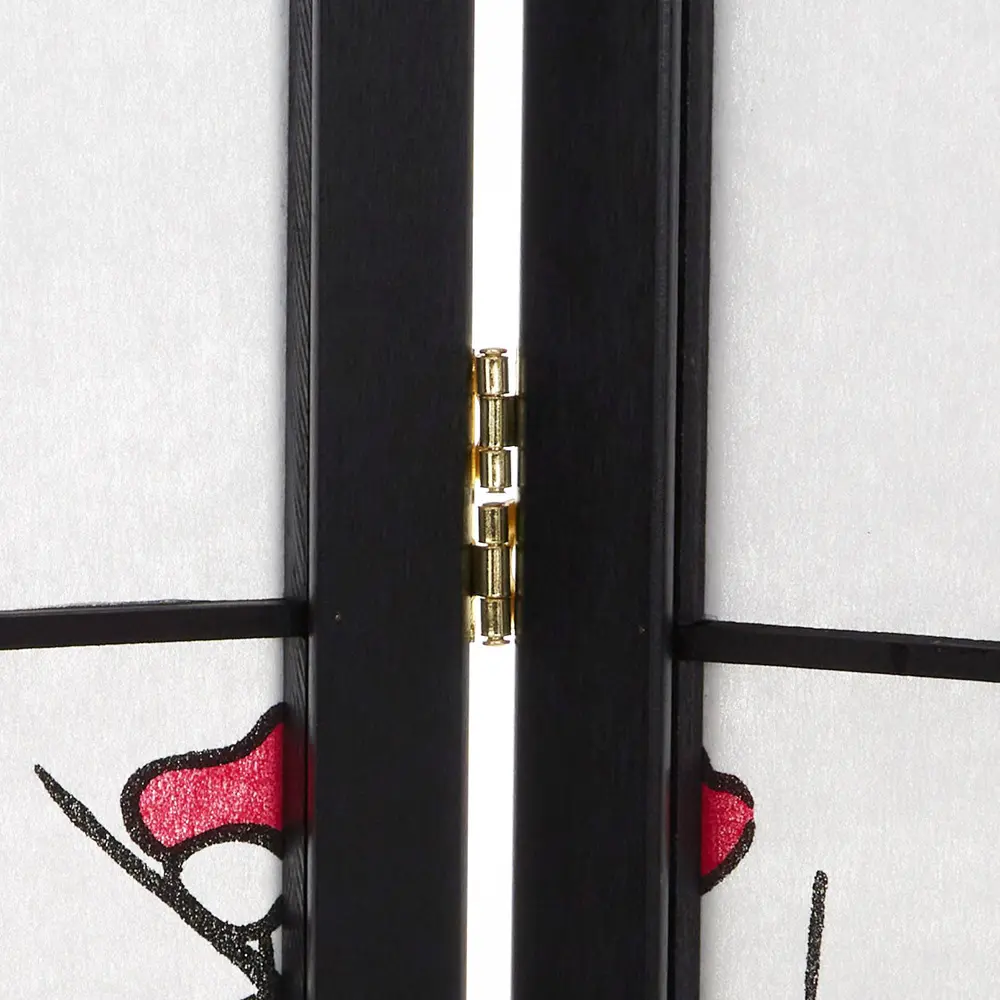 Raumteiler – Paravent 3-6 teilig Holz mit Shoji Reispapier und Motiv in Rot und Schwarz – Farbe: Schwarz