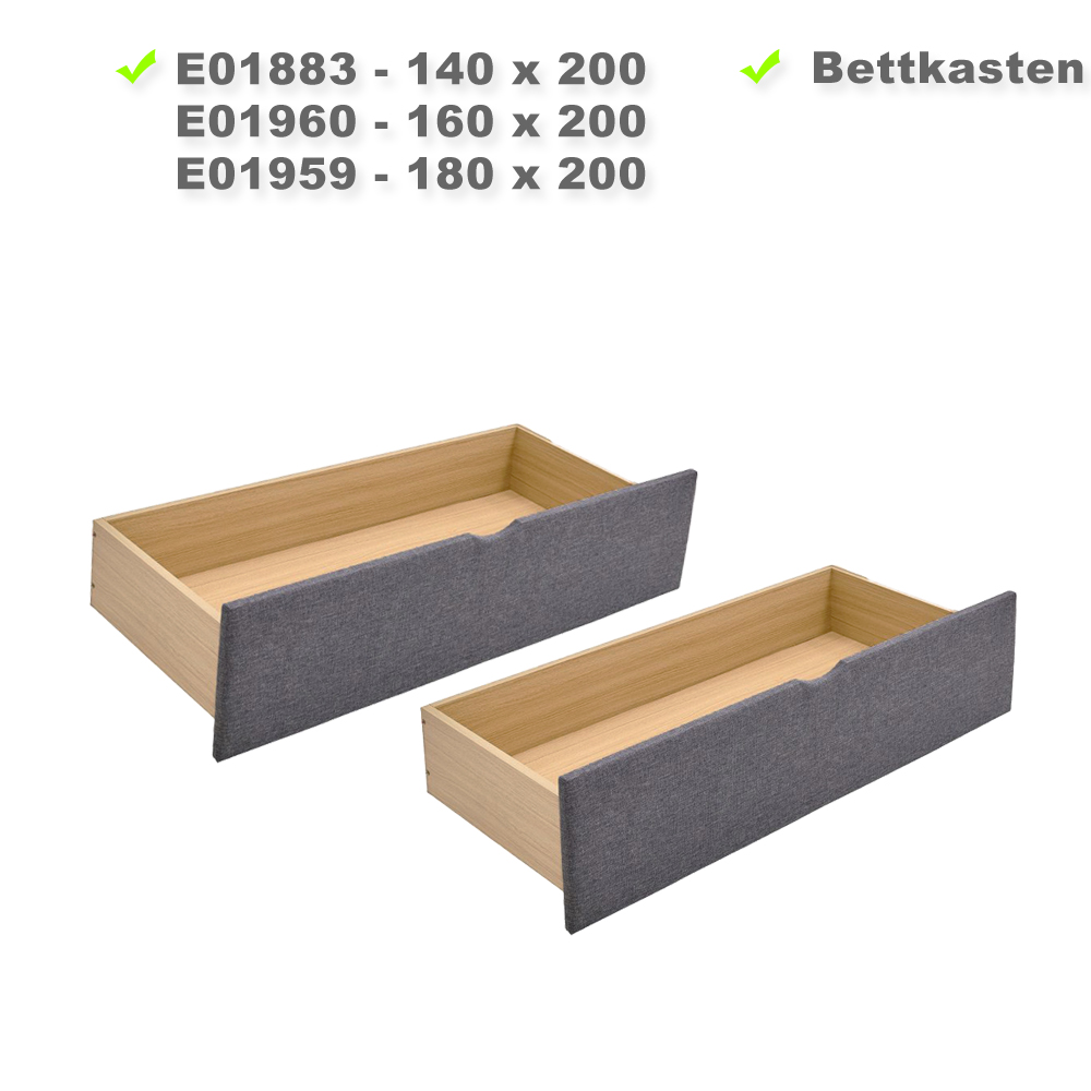 Das Set mit zwei Bettkästen passt zu folgenden hochwertigen Betten mit anthrazit/grau-farbigem Polster: