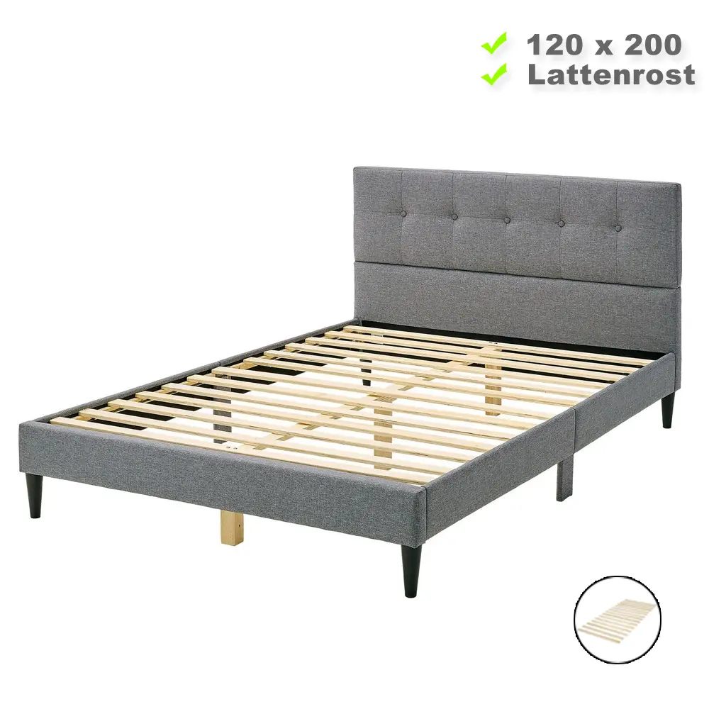 Das Polsterbett 120×200 wird inklusive Lattenrollrost geliefert. Der Lattenrost besteht aus achtfach verleimtem Holz. Auf diesem Lattenrost platzieren Sie Ihre Matratze und können sofort bequem ruhen und sich vom Alltag erholen. Der mitgelieferte Lattenrost kann auch durch einen eigenen Lattenrost ersetzt werden.