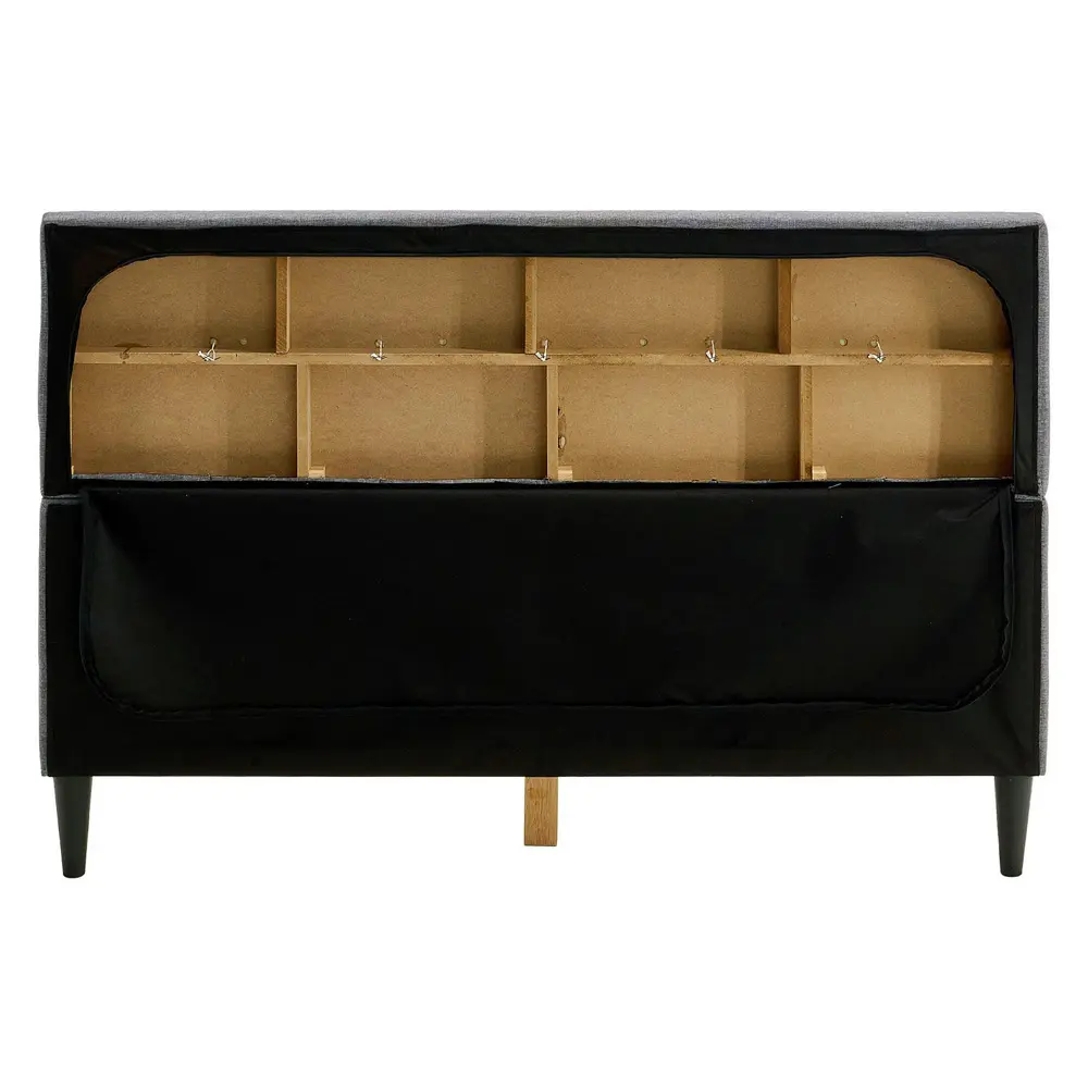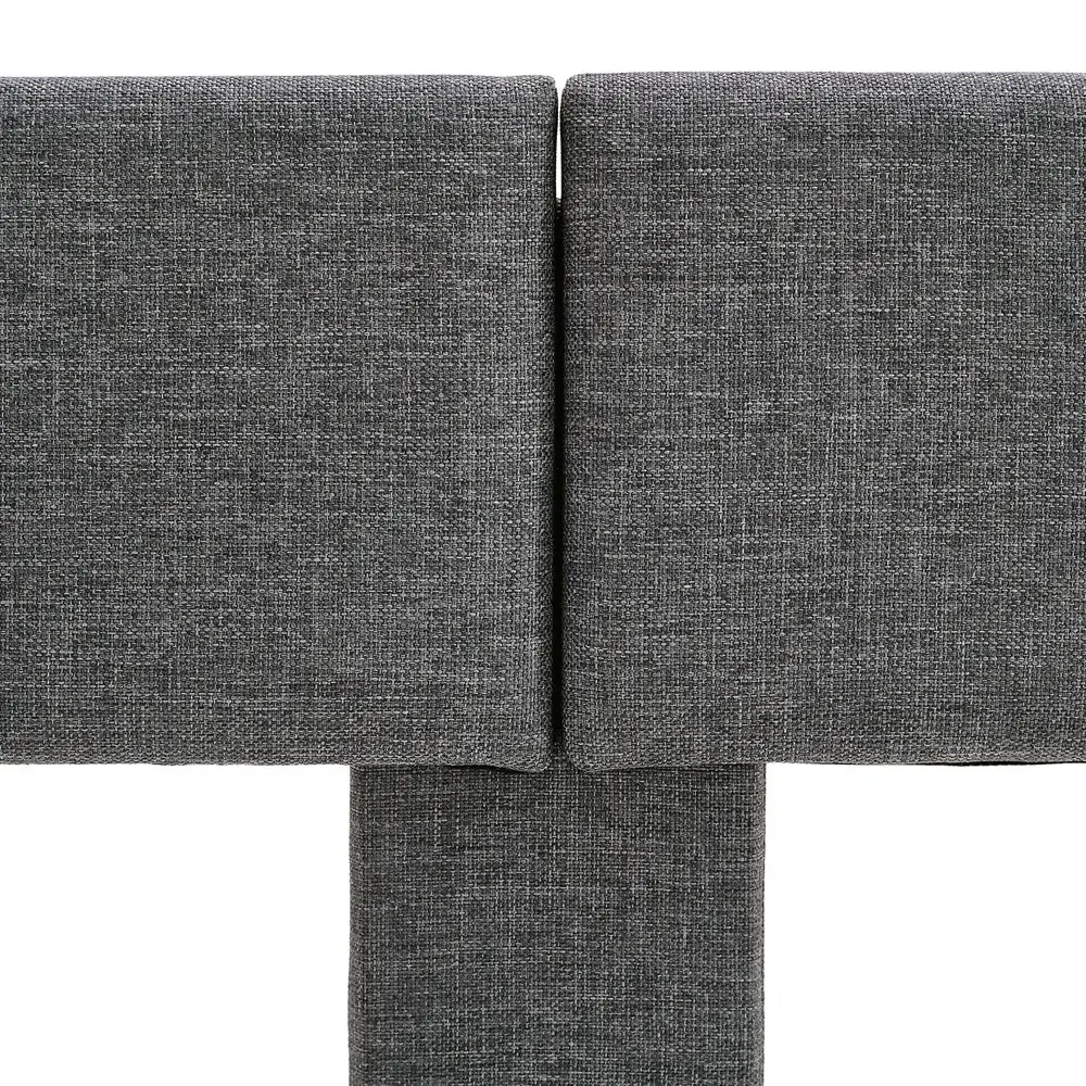 Der pflegeleichte Polyester-Bezug des stilvollen Polsterbettes ist mit einer hochwertigen Webstruktur in edlem Grau versehen, die dem Doppelbett eine elegante Note verleiht.