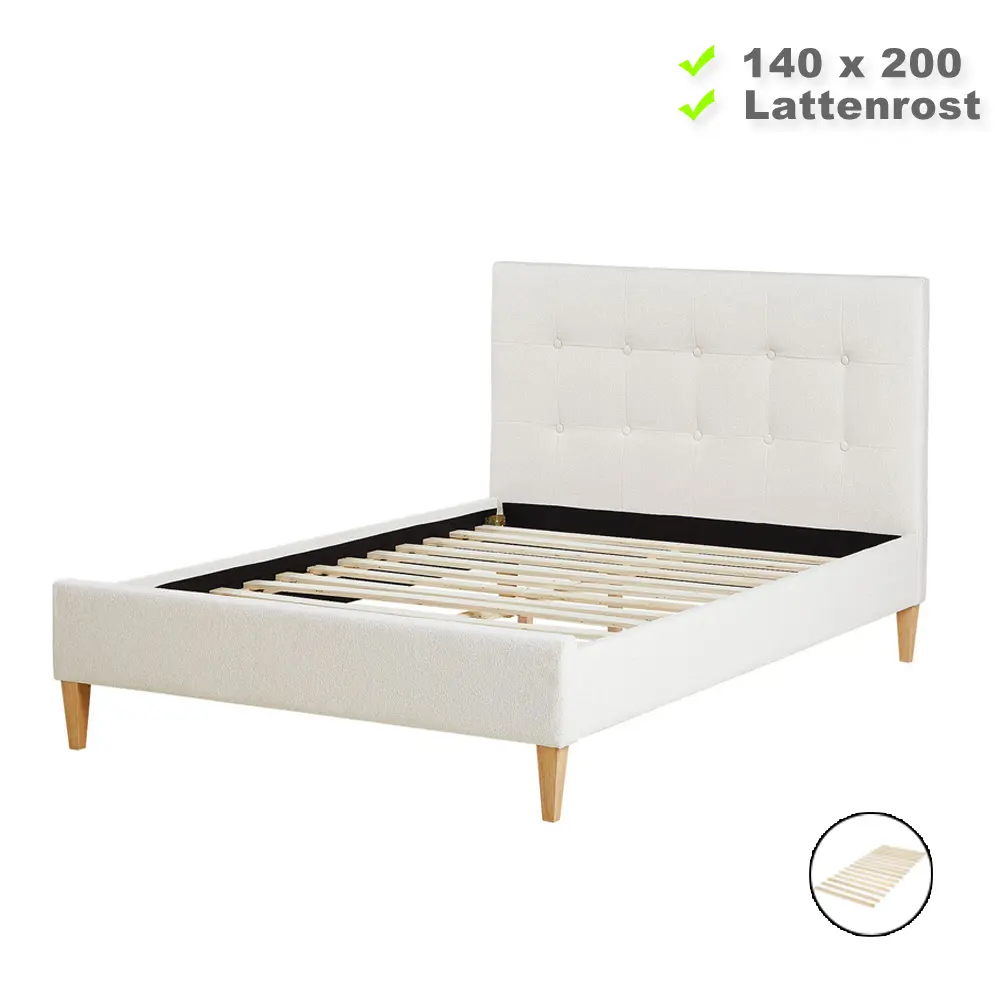 Polsterbett 140×200 Boucle Doppelbett in Beige – Mit hohem Kopfteil