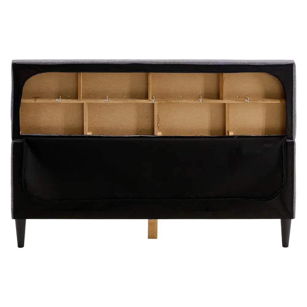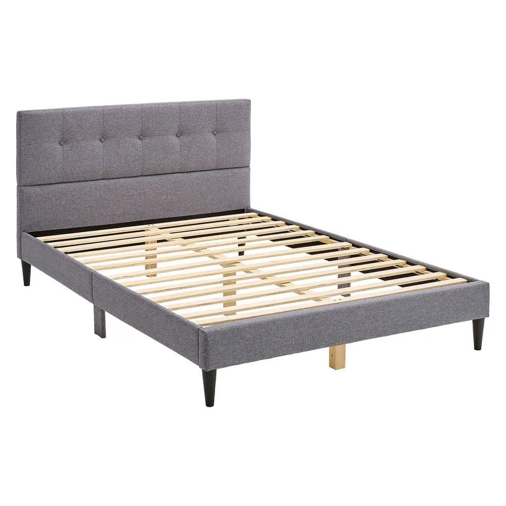Der pflegeleichte Polyesterstoff des schicken Polsterbettes ist mit einer hochwertigen Webstruktur versehen, die dem Doppelbett einen Designtouch verleiht. Wählen Sie je nach Wunsch und Verfügbarkeit das Polsterbett in den Farben Braun, Schwarz oder Grau aus, ganz wie es farblich zu Ihrem Schlafraum passt.