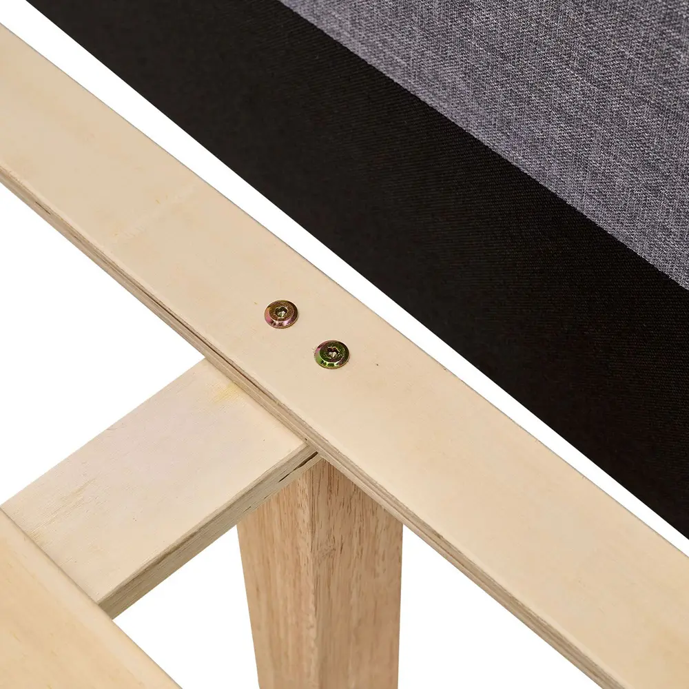 Material | Füße aus Holz, Korpus aus malaysischem Hartholz, Lattenrollrost aus Kiefernholz, Polsterbezug 100% Polyester |