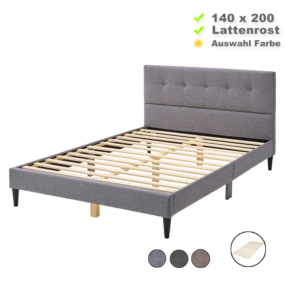 Das Polsterbett 140×200 wird inklusive Lattenrollrost geliefert. Der Lattenrost besteht aus 8fach geleimten Holz. Auf diesem Lattenrost platzieren Sie Ihre Matratze und schon können Sie bequem ruhen und sich vom Alltag erholen. Das mitgelieferte Lattenrollrost kann auch durch einen eigenen Lattenrost ersetzt werden.