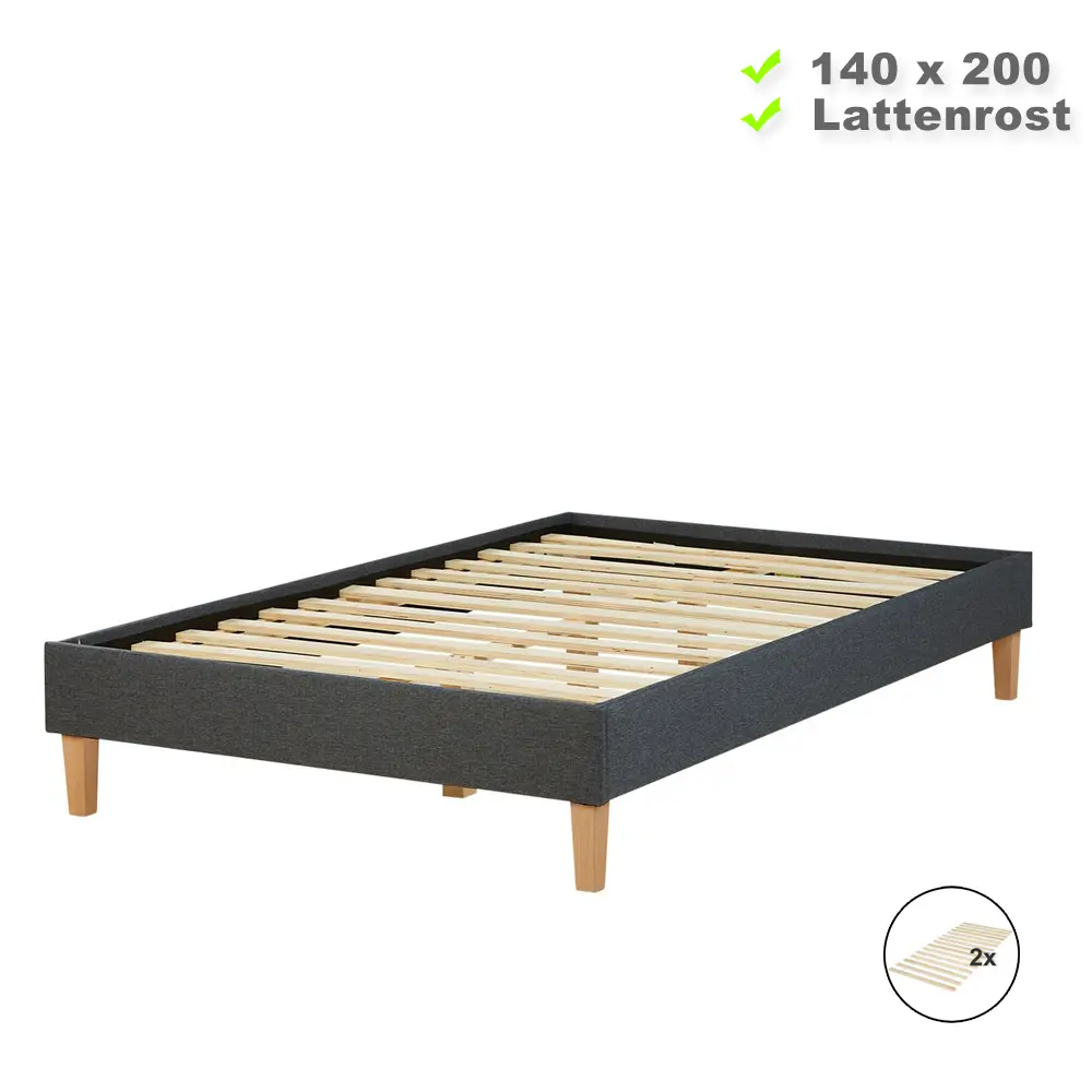 Ein schönes Polsterbett mit einer geräumigen Liegefläche von 140×200 cm, ein Doppelbett ohne Kopfteil. Lattenroste sind inklusive. Der Farbton des Bettes ist elegant in Grau/Anthrazit gehalten.