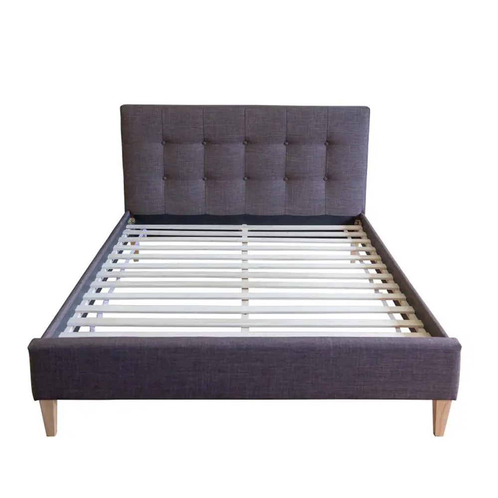 Das Polsterbett 160×200 besteht unter dem Polsterstoff aus einem Echtholz-Bettrahmen aus malaysischem Hartholz. Das Hartholz wurde klar lackiert und für die Sicherheit abgerundet. Das Doppelbett hat eine Gesamttraglast von maximal 250 Kilogramm, pro Liegefläche maximal 125 Kilogramm. Die Mittelstrebe hat 3 extra Stützfüße zur zusätzlichen Stabilität. Die Bettfüße sind ebenfalls aus Holz gefertigt und geben dem Bett die Standfestigkeit.