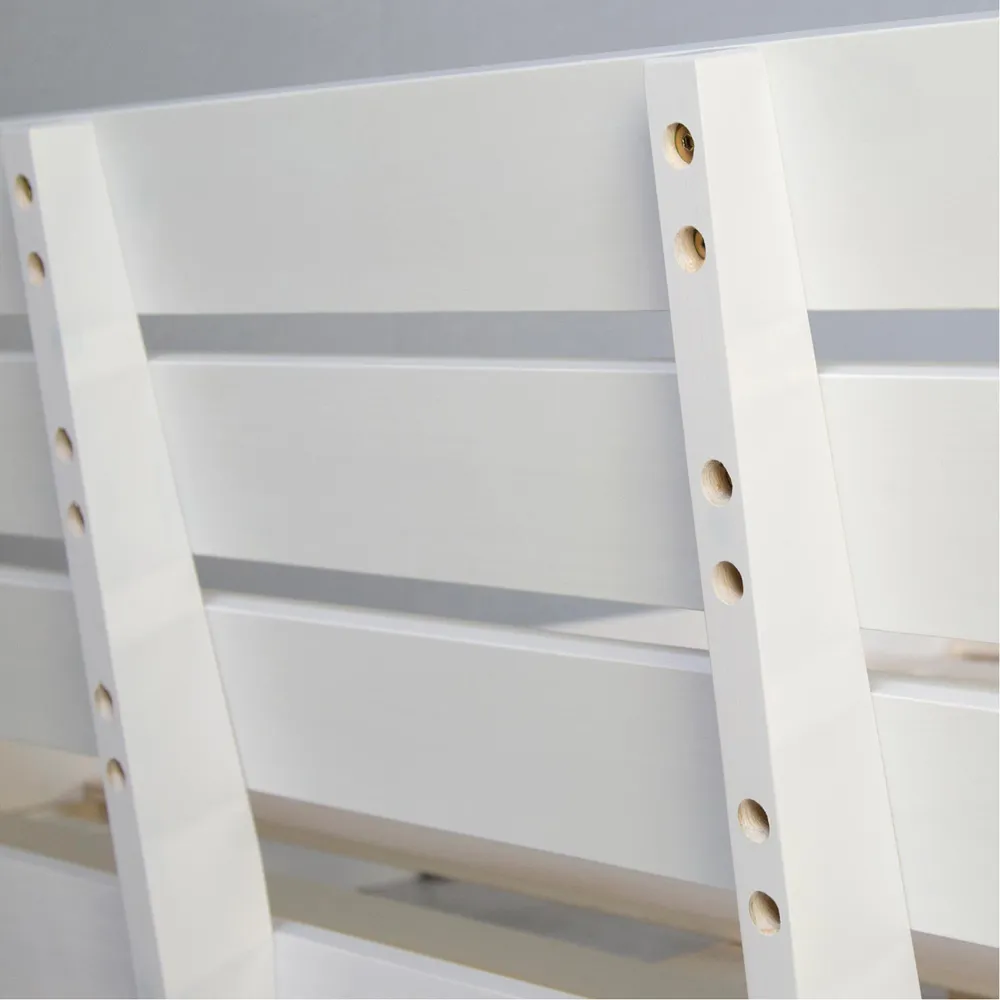 Das weiße Holzbett ist in vier Größen verfügbar: 120×200 cm, 140×200 cm, 160×200 cm und 180×200 cm.