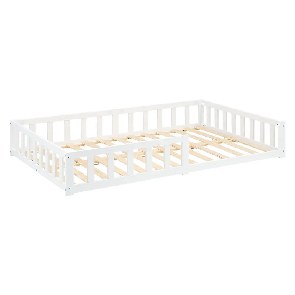 Kinderbett 120 × 200 cm – Bodenbett in Weiß mit Rausfallschutz – Ausstellungsbett