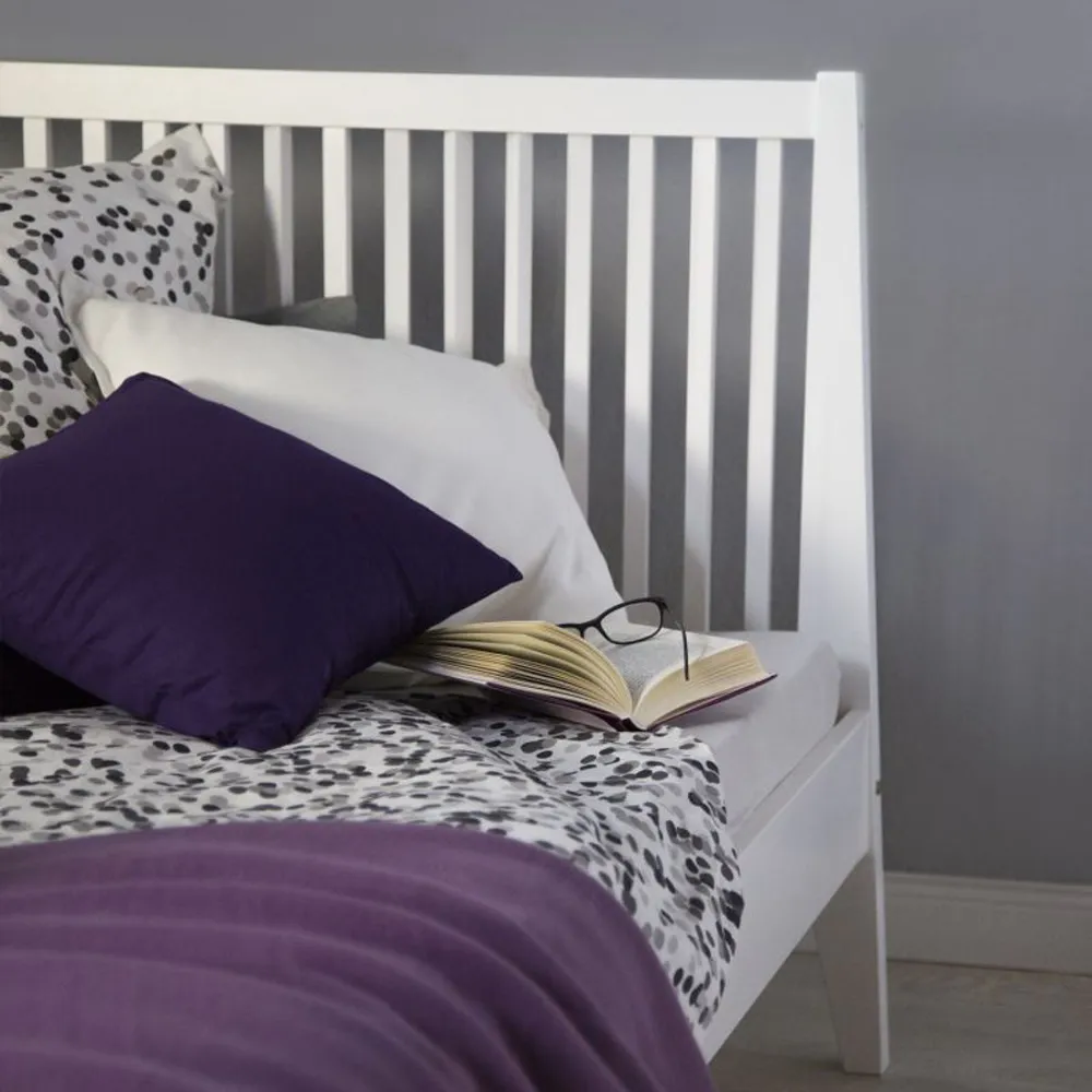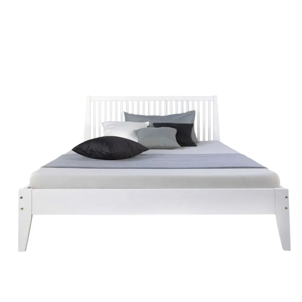 Ausstellungsbett – Massivholzbett 140×200 cm – Doppelbett in Weiß mit hohem Kopfteil