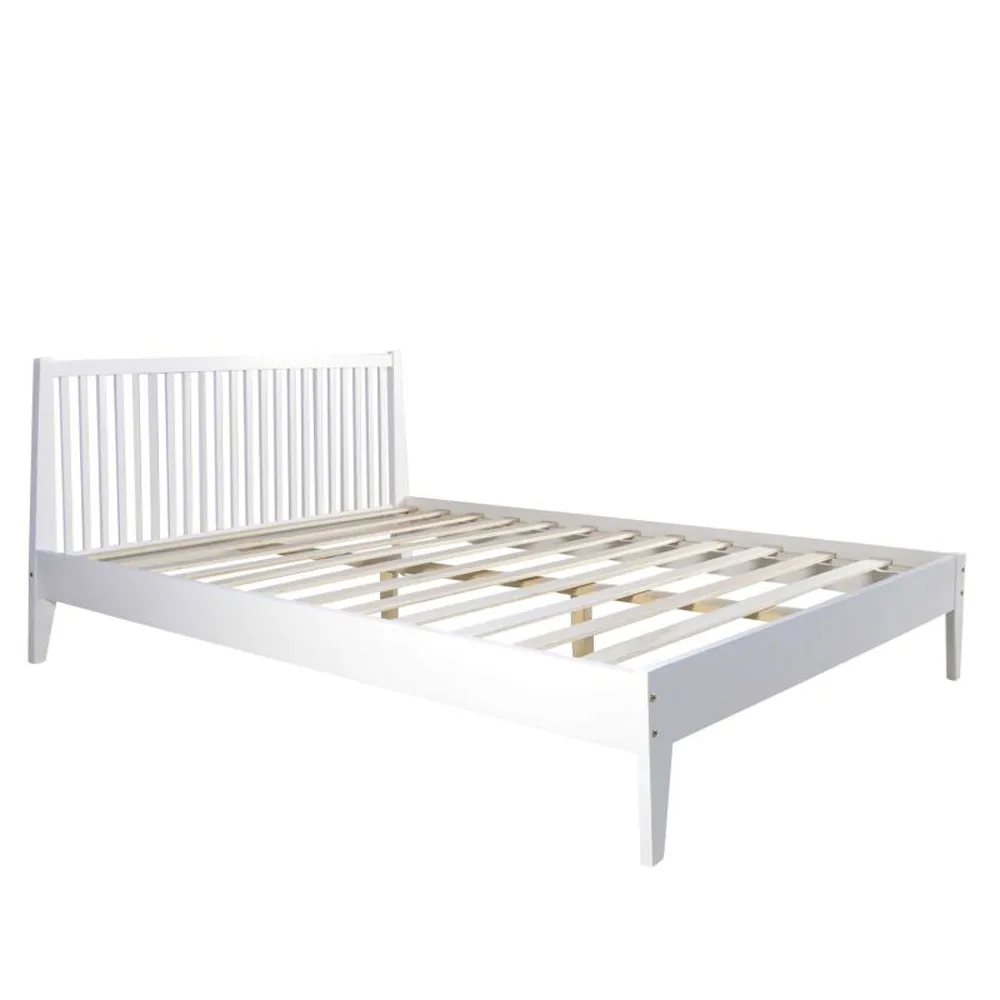 Massivholzbett 140 × 200 cm – Doppelbett in Weiß mit hohem Kopfteil – Ausstellungsbett