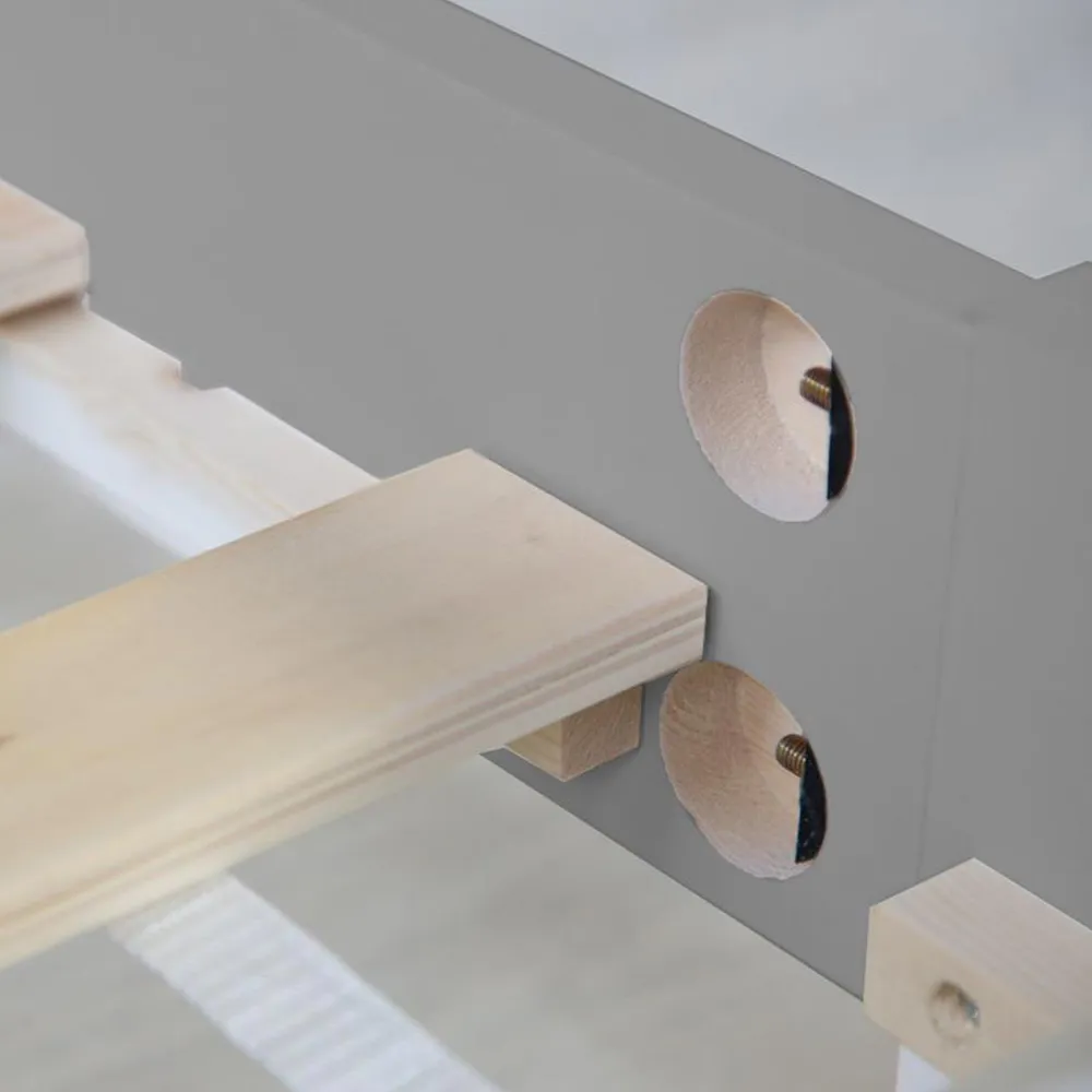 Bauen Sie das Bett mithilfe der beiliegenden Schritt-für-Schritt-Anleitung auf und verwenden Sie das mitgelieferte Befestigungsmaterial, um eine robuste und sichere Konstruktion zu gewährleisten.