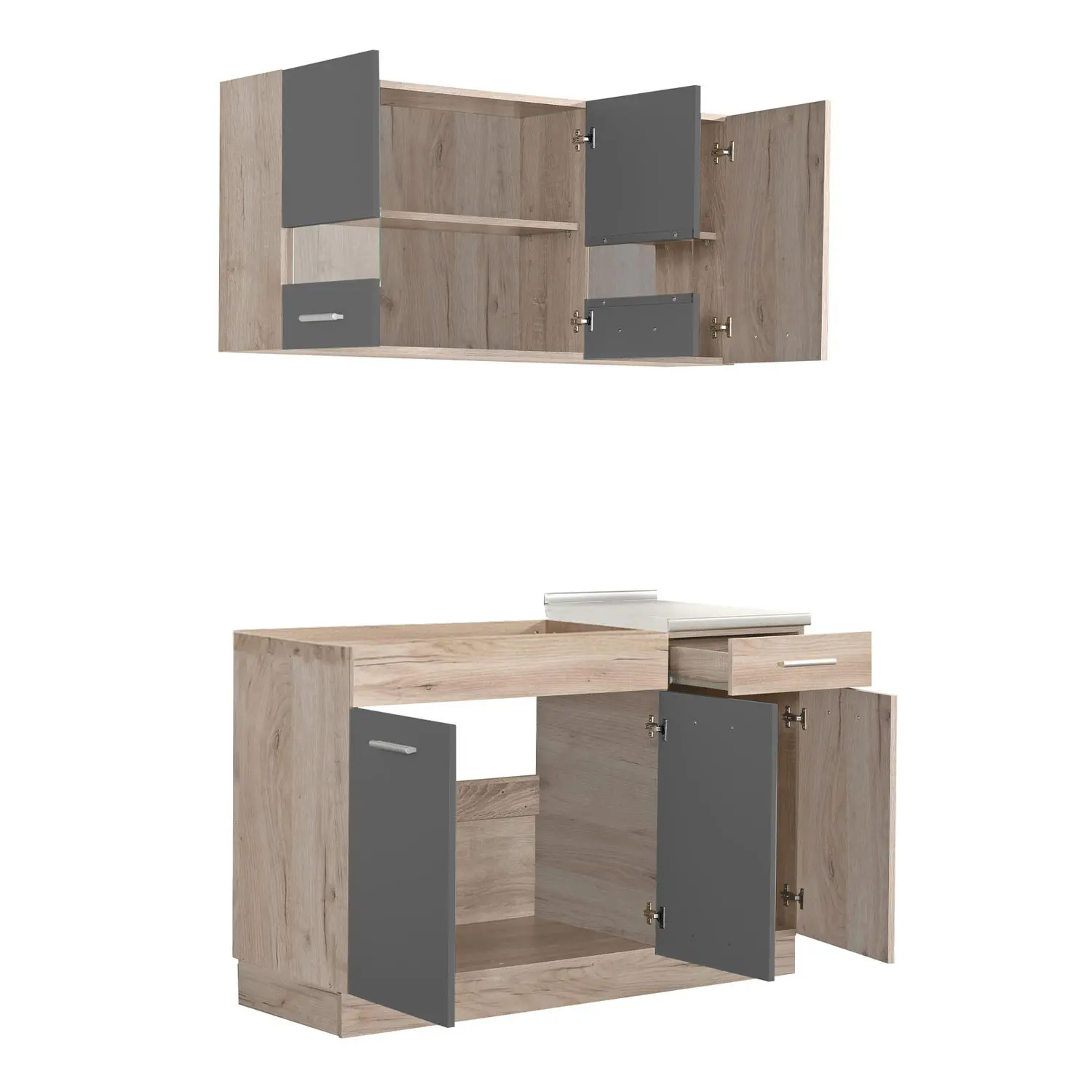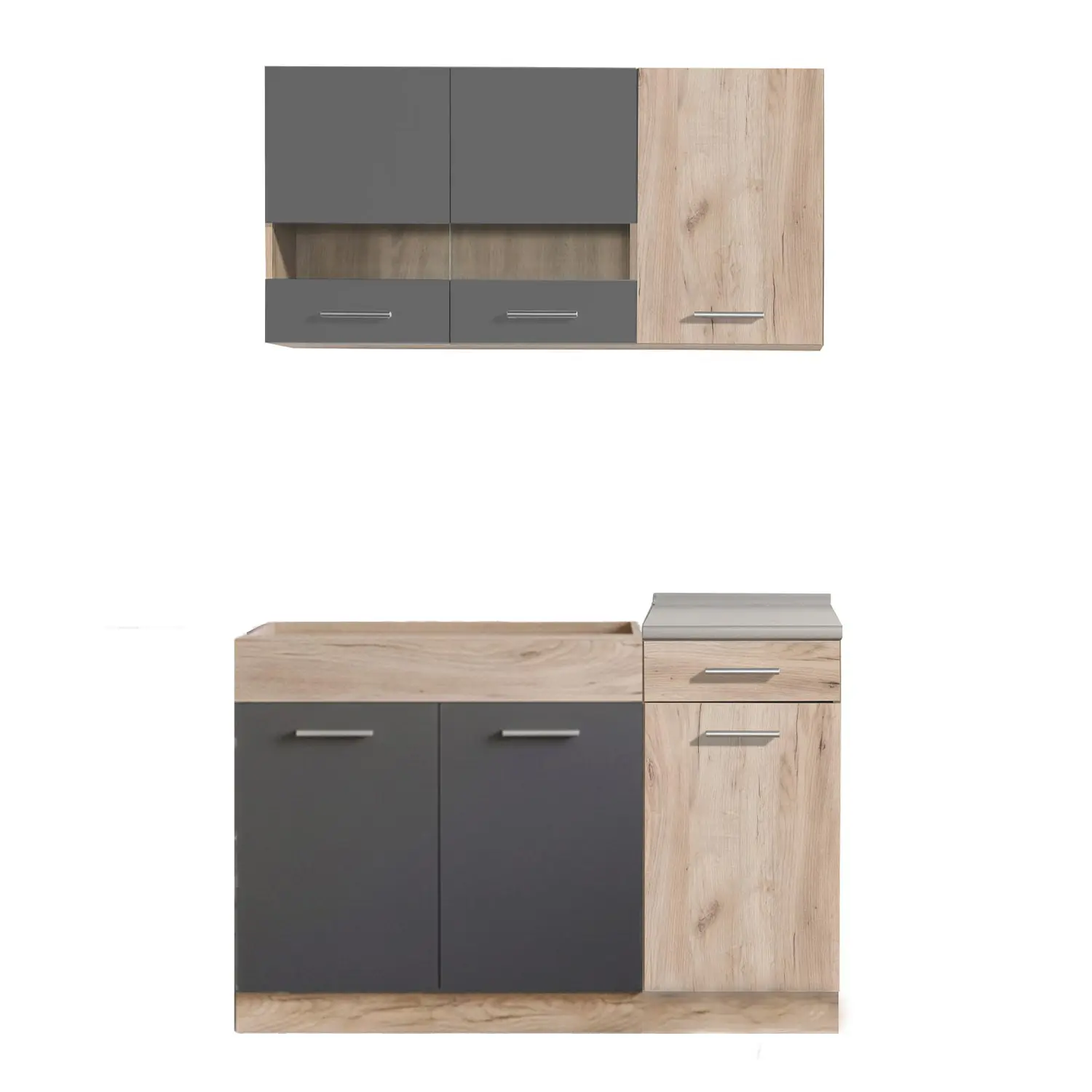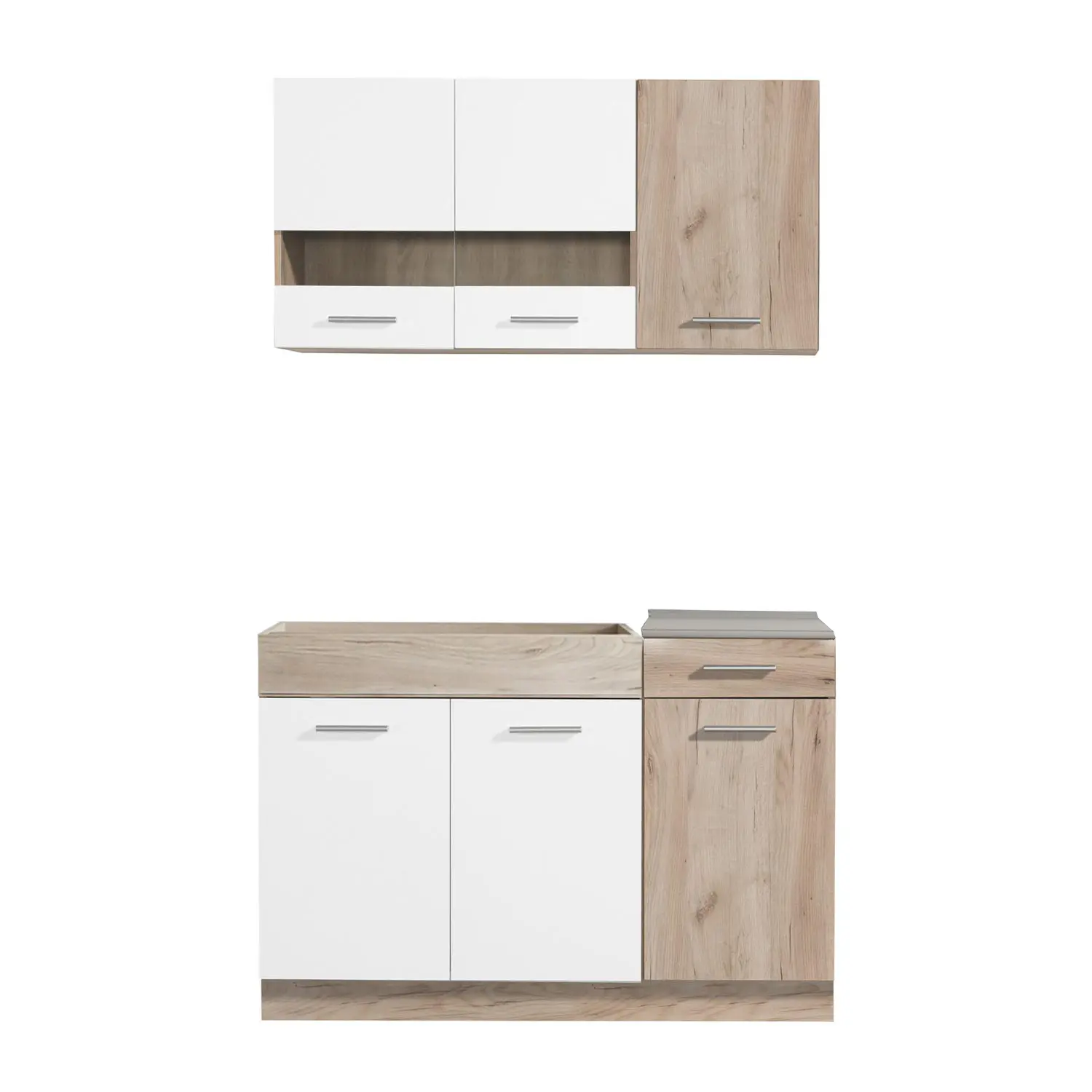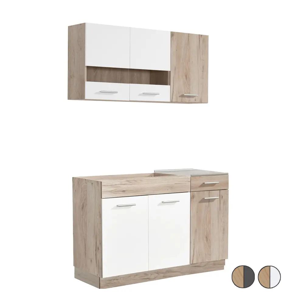 Küchenmöbel 120 cm Breite – Kücheneinheit mit zwei Küchenzeilen – Farbe-Auswahl: Natur-Weiß Natur-Grau