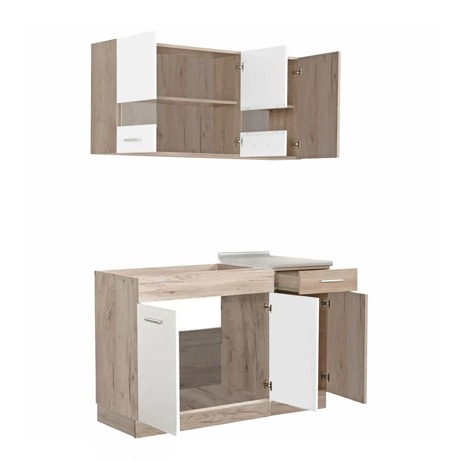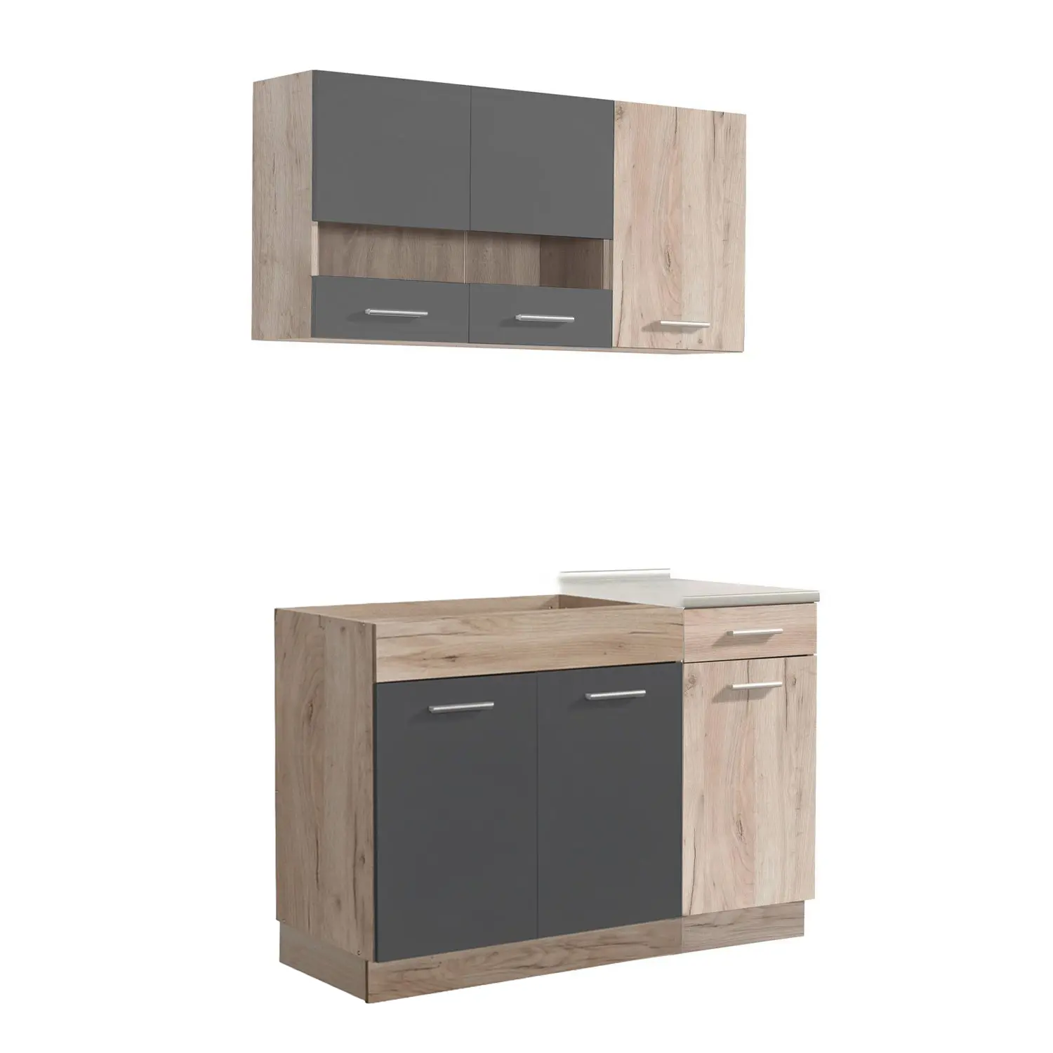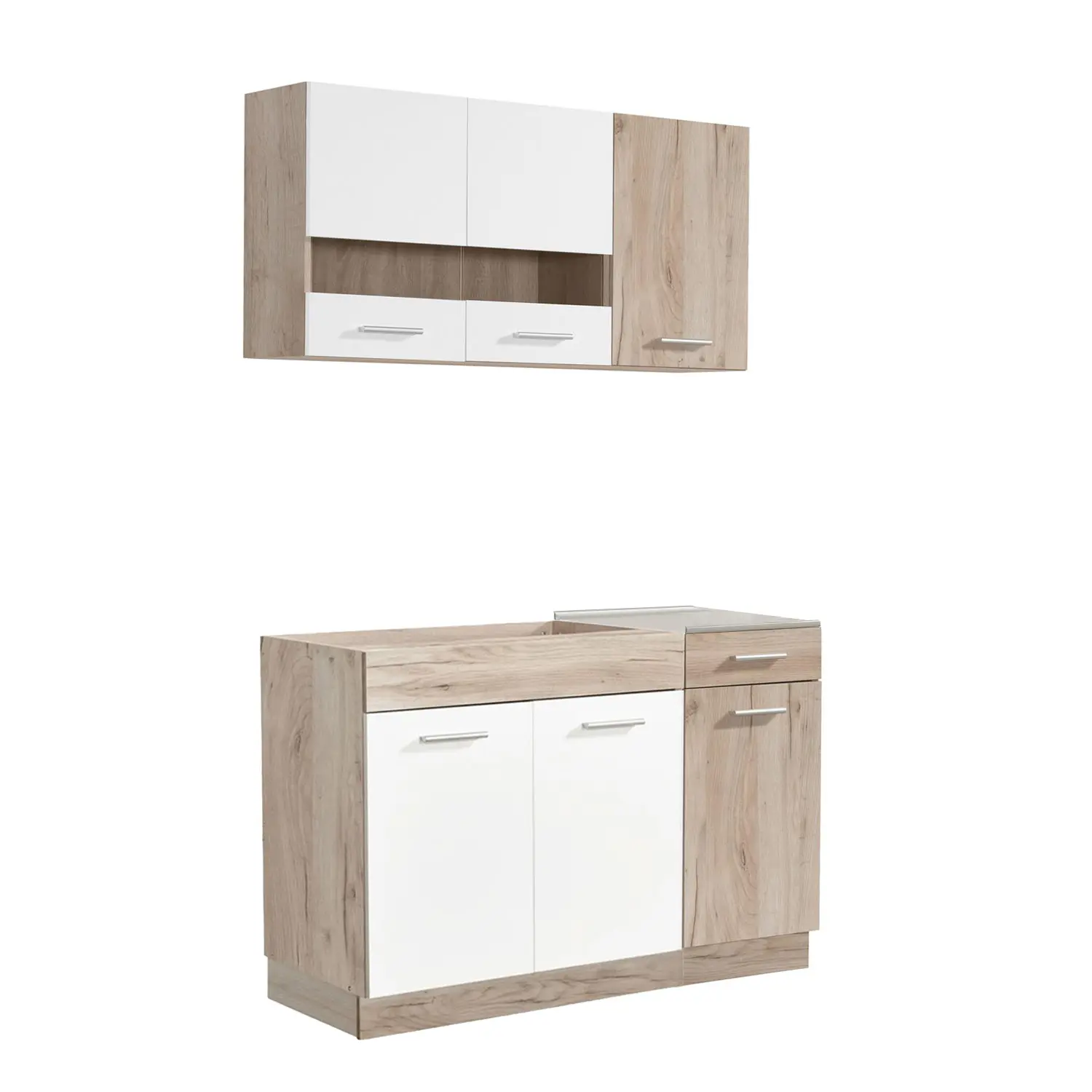 Küchenmöbel 120 cm Breite – Kücheneinheit mit zwei Küchenzeilen – Farbe-Auswahl: Natur-Weiß Natur-Grau