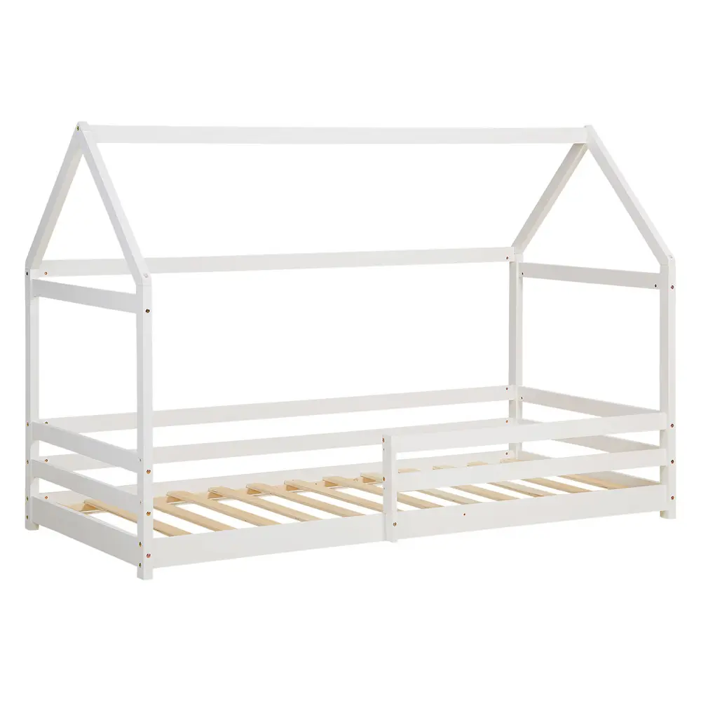 Kinderbett 90 x 200 cm – Massivholz Hausbett in Weiß im Montessori Design – Retourware