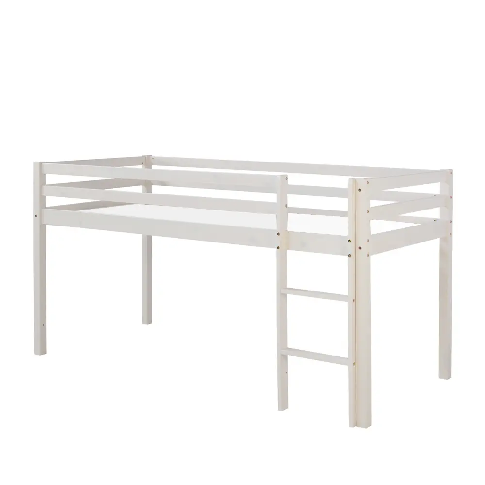 Kinderbett 90 x 200 cm – Hochbett aus Kiefernholz in Weiß mit Leiter – Retourware