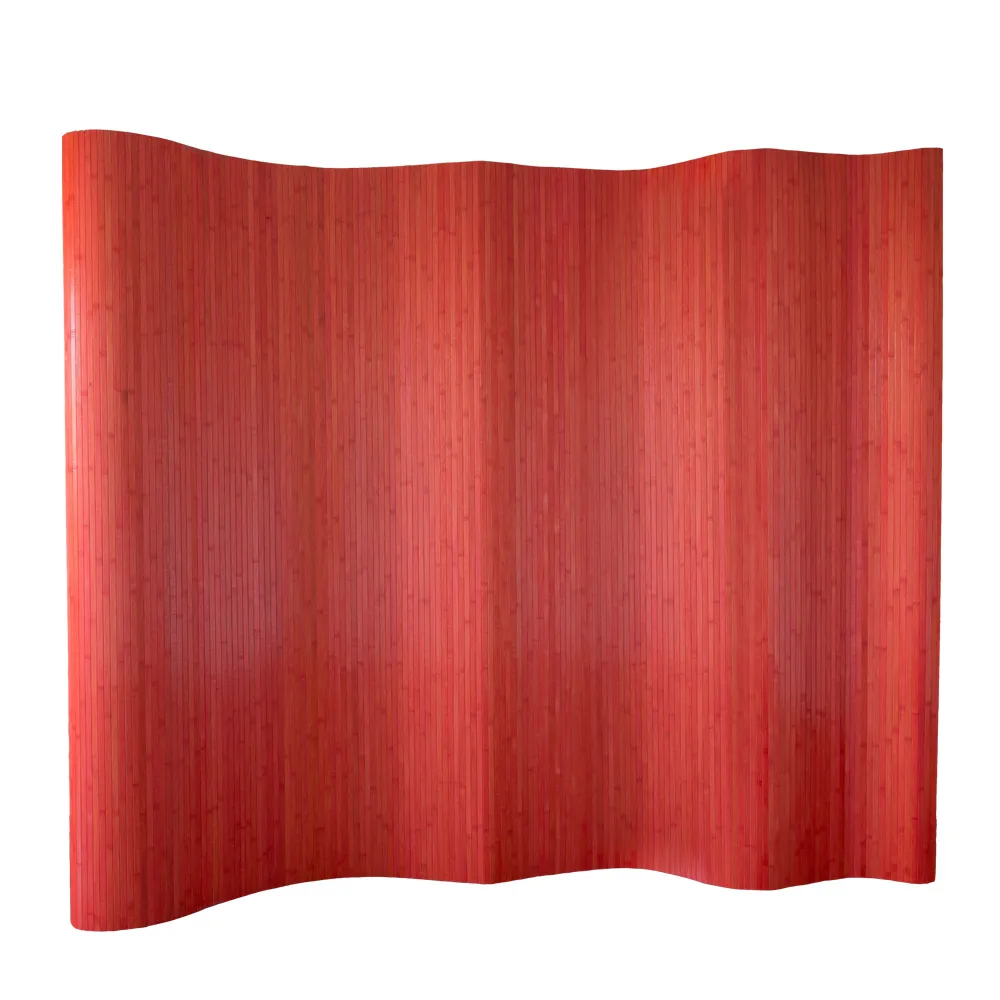 B-Ware – Warenrückläufer – Raumteiler, 250 cm Breite, 200 cm Höhe – Bambus Trennwand in welliger Form, in der Farbe Rot.