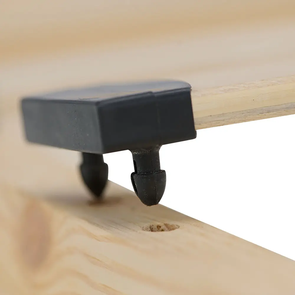 Einschubkappen aus Kunststoff, Korpus aus Kiefernholz, Leisten aus Schichtholz