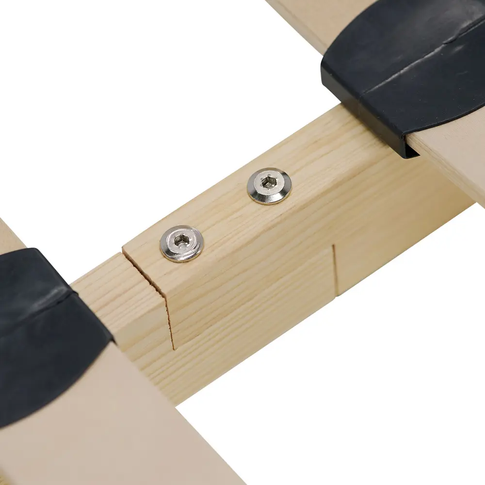 Der tragende Rahmen besteht aus massivem Kiefernholz und ist mit seitlich eingesteckten Leisten ausgestattet, was für eine hohe Standfestigkeit sorgt. Gefertigt aus furniertem Schichtholz überzeugen die Federleisten durch Widerstandsfähigkeit und Formstabilität. Dieser Lattenrost ist für Betten und Matratzen mit einer Liegefläche von 120 x 200 cm konzipiert wurden. Der Zusammenbau gestaltet sich unkompliziert und der Rahmen passt problemlos in gängige Bettkonstruktionen.