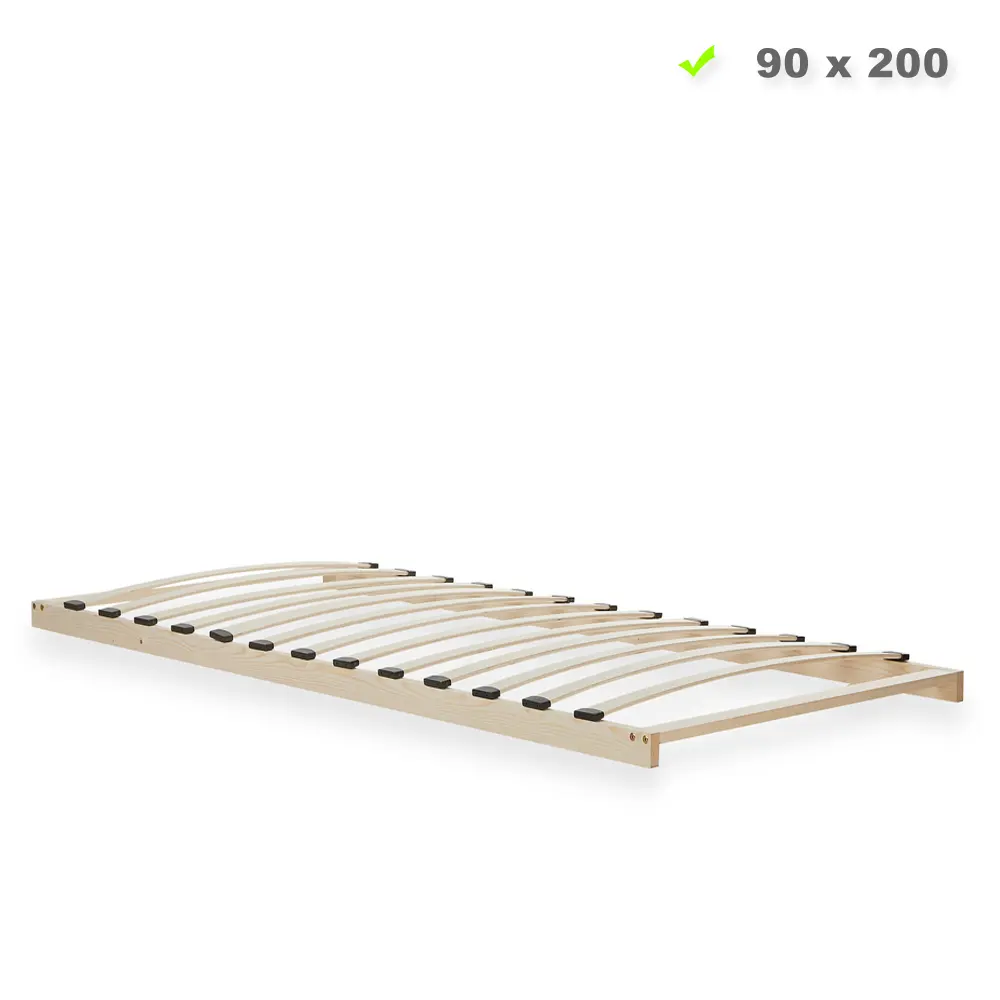 Der Lattenrost ist mit 13 elastischen Federholzleisten ausgestattet, die sich ergonomisch an die Konturen Ihres Körpers anpassen. Dadurch wird eine ideale Schlafposition ermöglicht und das Körpergewicht optimal verteilt. Die Traglast liegt bei maximal 100 Kilogramm.